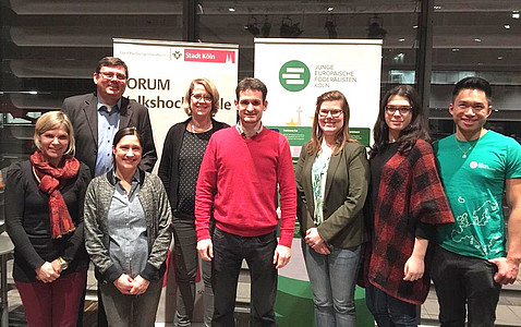 Eine erfreulich hohe Anzahl von über 60 Teilnehmerinnen und Teilnehmern war im Januar der Einladung der Europa-Union Köln in das VHS-Forum im Rautenstrauch-Joest-Museum gefolgt, über das etwas sperrige Thema Finanzen der EU zu diskutieren. Nach der Begrüßung durch Henrike Viehrig und einer allgemeinen Einführung durch Hans Stein besuchten die Teilnehmerinnen und Teilnehmer vier Stationen, die sich mit den Themen Verteidigung, Soziales und Jugendarbeitslosigkeit, EU-Gelder in NRW und Landwirtschaft beschäftigten. » weiterlesen
