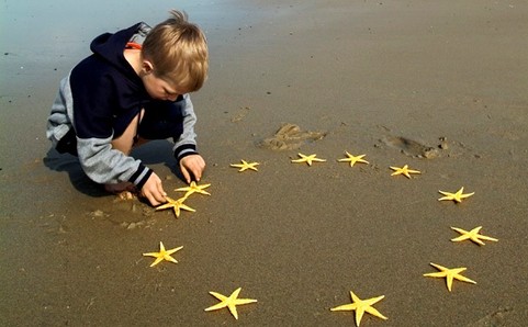 Male ein Bild über Europa, die Europäische Union. Du darfst auch ein einzelnes, europäisches Land malen, aber immer zusammen mit der EU – zum Beispiel mit der blauen Flagge mit den gelben Sternen. Oder einfach nur deine Gedanken dazu…