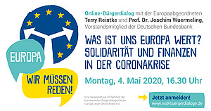 JETZT HIER ANMELDEN (Die Plätze sind begrenzt): www.edudip.com/de/webinar/online-burgerdialog-was-ist-uns-europa-wert-solidaritat-und-finanzen-in-der-coronakrise/206146