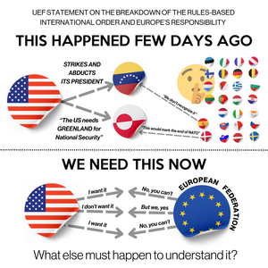 Die Union der Europäischen Föderalisten fordert daher die europäischen Staats- und Regierungschefs, Parlamente und Bürger auf, den Ernst der aktuellen Lage zu erkennen und entsprechend zu handeln. Angesichts des Imperialismus muss sie dringend ihre strategischen Abhängigkeiten beenden und ihre Unabhängigkeit erklären. Die Frage sollte nicht mehr lauten, ob Europa reagieren sollte, sondern wann. Was muss noch geschehen, bevor die europäischen Eliten die Gefahr erkennen, der wir ausgesetzt sind? Die europäischen Bürger befürworten mit überwältigender Mehrheit eine europäische Armee und Diplomatie, und diese kann nur durch den Zusammenschluss zu einer Föderation geschaffen werden, die unsere demokratische Lebensweise, den Frieden und die Freiheit rettet und gleichzeitig die Autonomie ihrer Mitgliedstaaten respektiert.